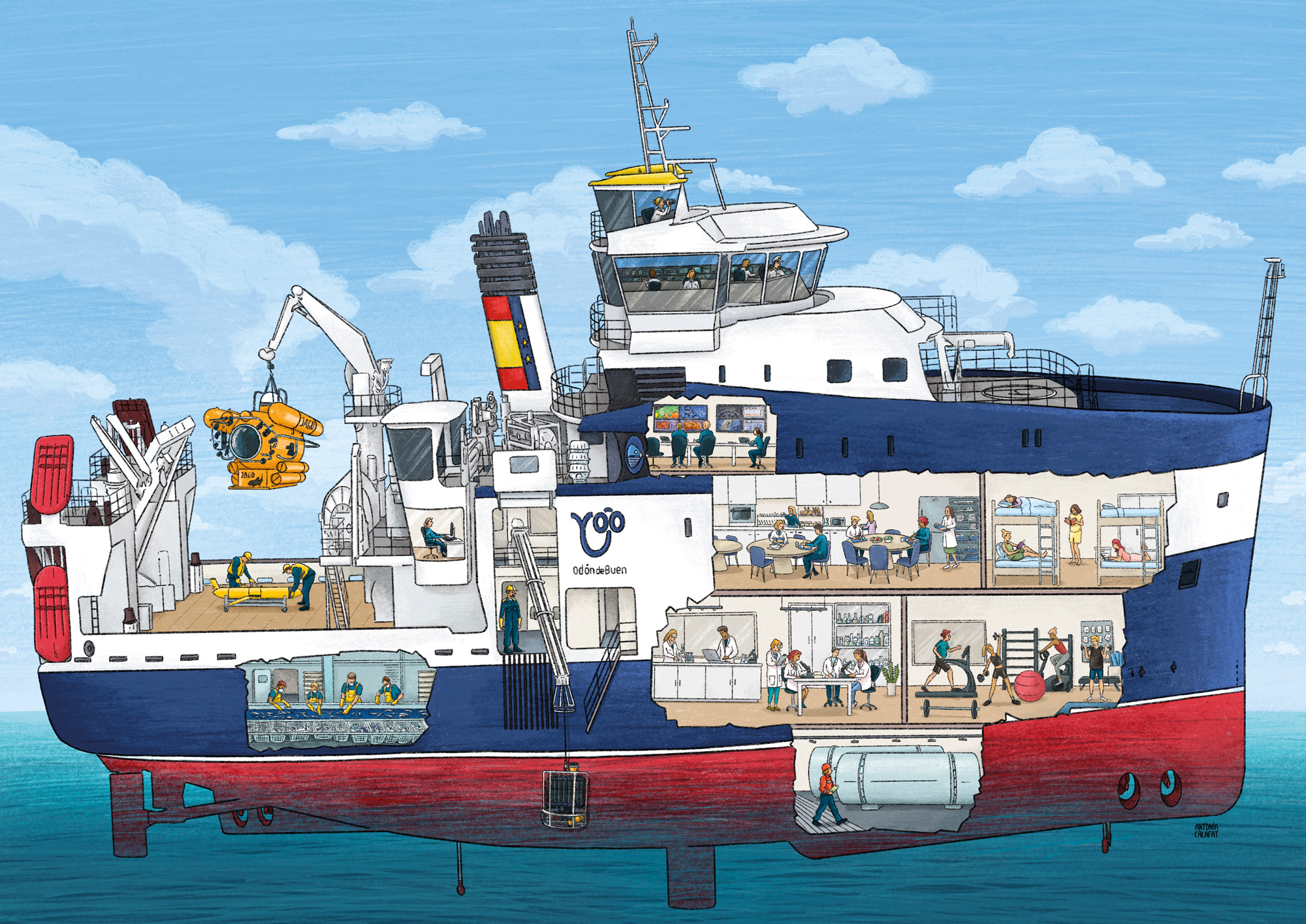 La realització de les 7 il·lustracions principals va ser una tasca apassionant i meticulosa, que va requerir múltiples revisions i un cuidat extrem dels detalls. Cada escena és complexa i conté nombrosos elements relacionats amb els entorns marins i els objectes propis de l’oceanografia, fet que va fer que les il·lustracions fossin molt laborioses.