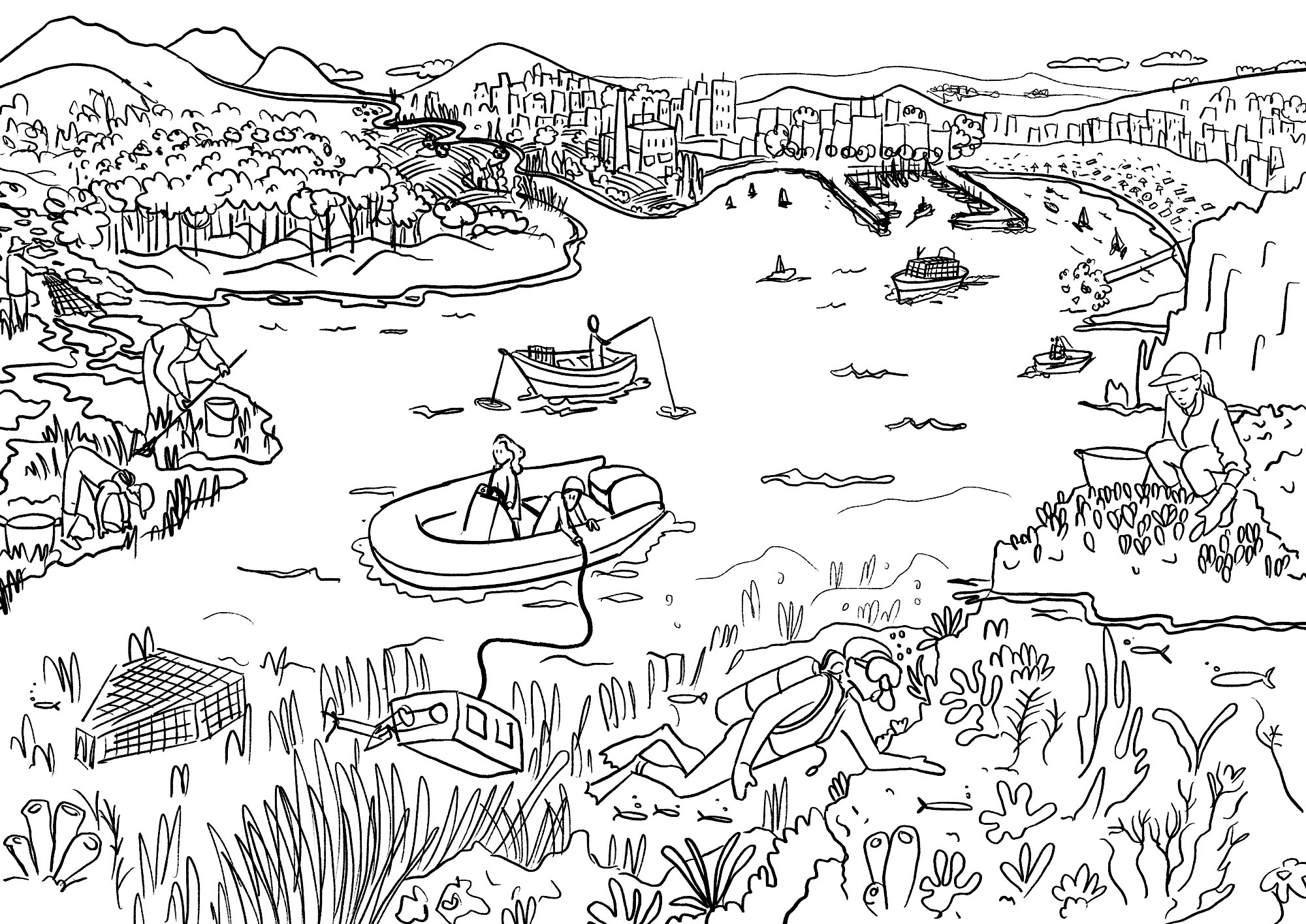 La realització de les 7 il·lustracions principals va ser una tasca apassionant i meticulosa, que va requerir múltiples revisions i un cuidat extrem dels detalls. Cada escena és complexa i conté nombrosos elements relacionats amb els entorns marins i els objectes propis de l’oceanografia, fet que va fer que les il·lustracions fossin molt laborioses.