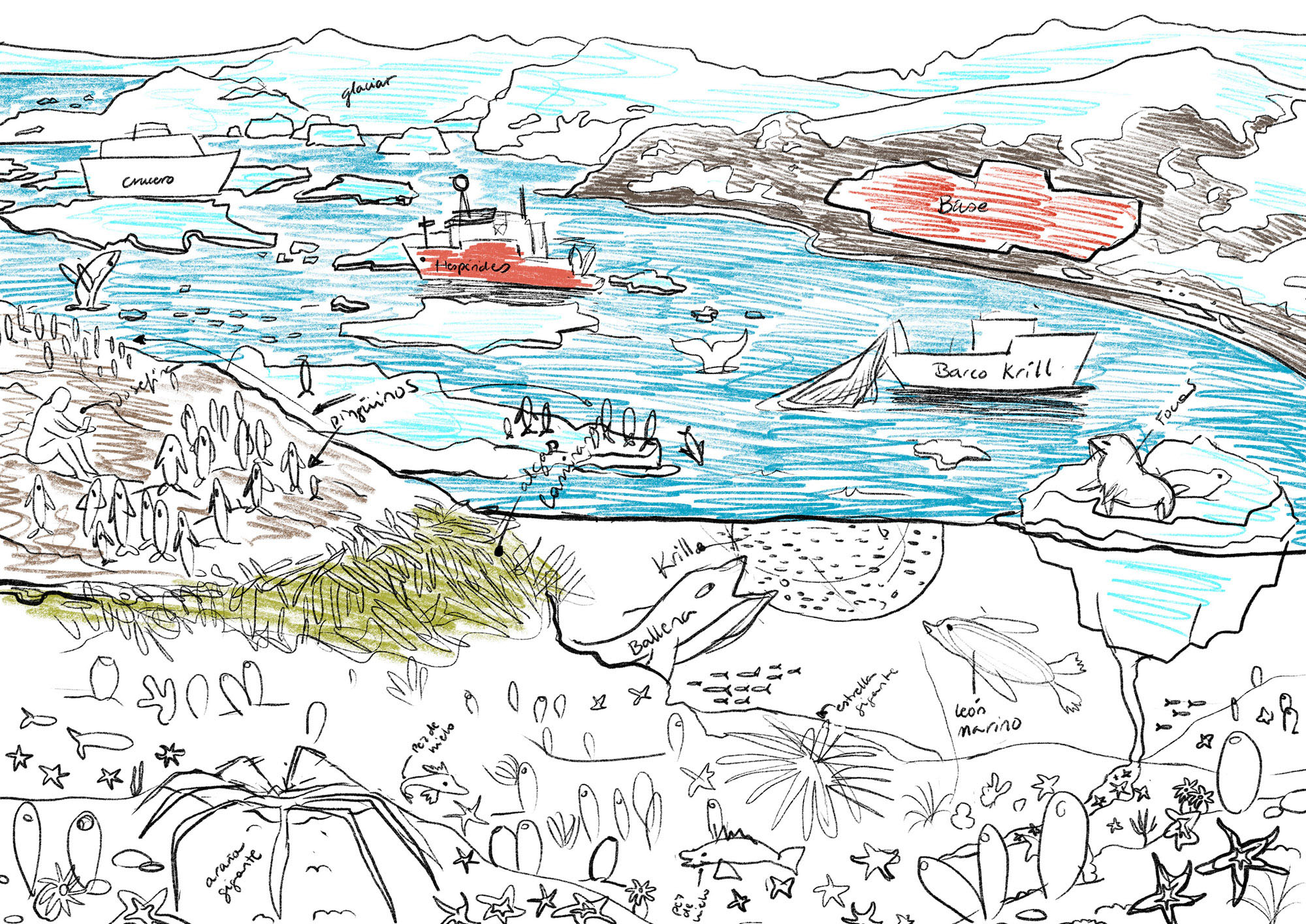 Per a cada làmina, vaig dur a terme un estudi exhaustiu de documentació que incloïa fauna, flora, paisatges polars i marins, així com equips i materials científics. Aquesta fase em va permetre aprendre molt sobre els diferents ecosistemes i la vida quotidiana de les oceanògrafes, una experiència que vaig gaudir enormement i que va enriquir cada il·lustració.