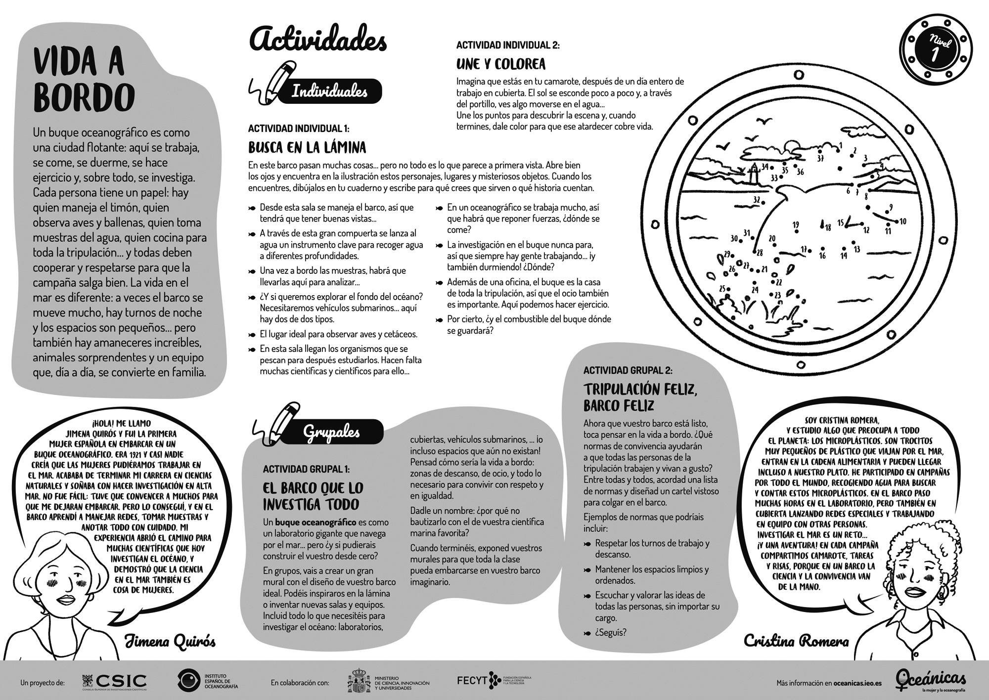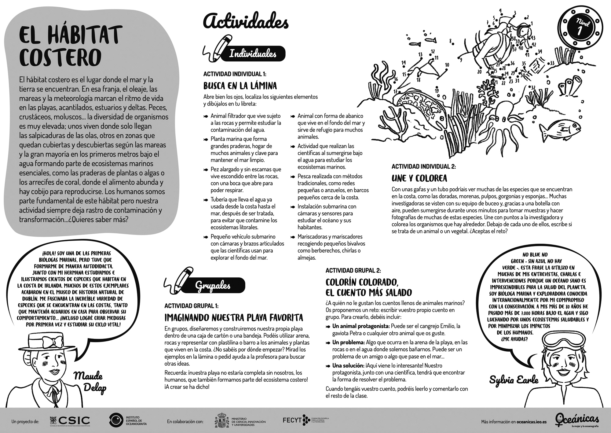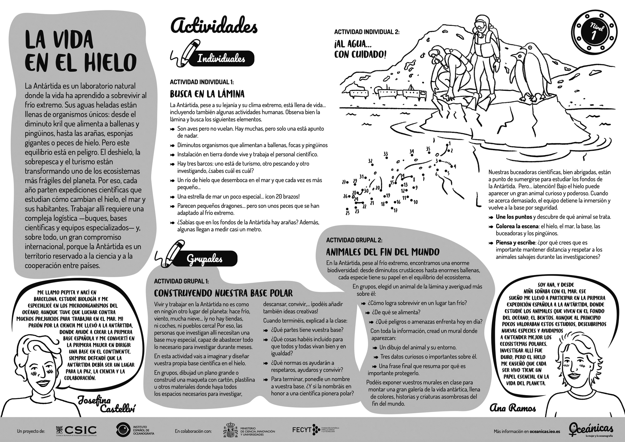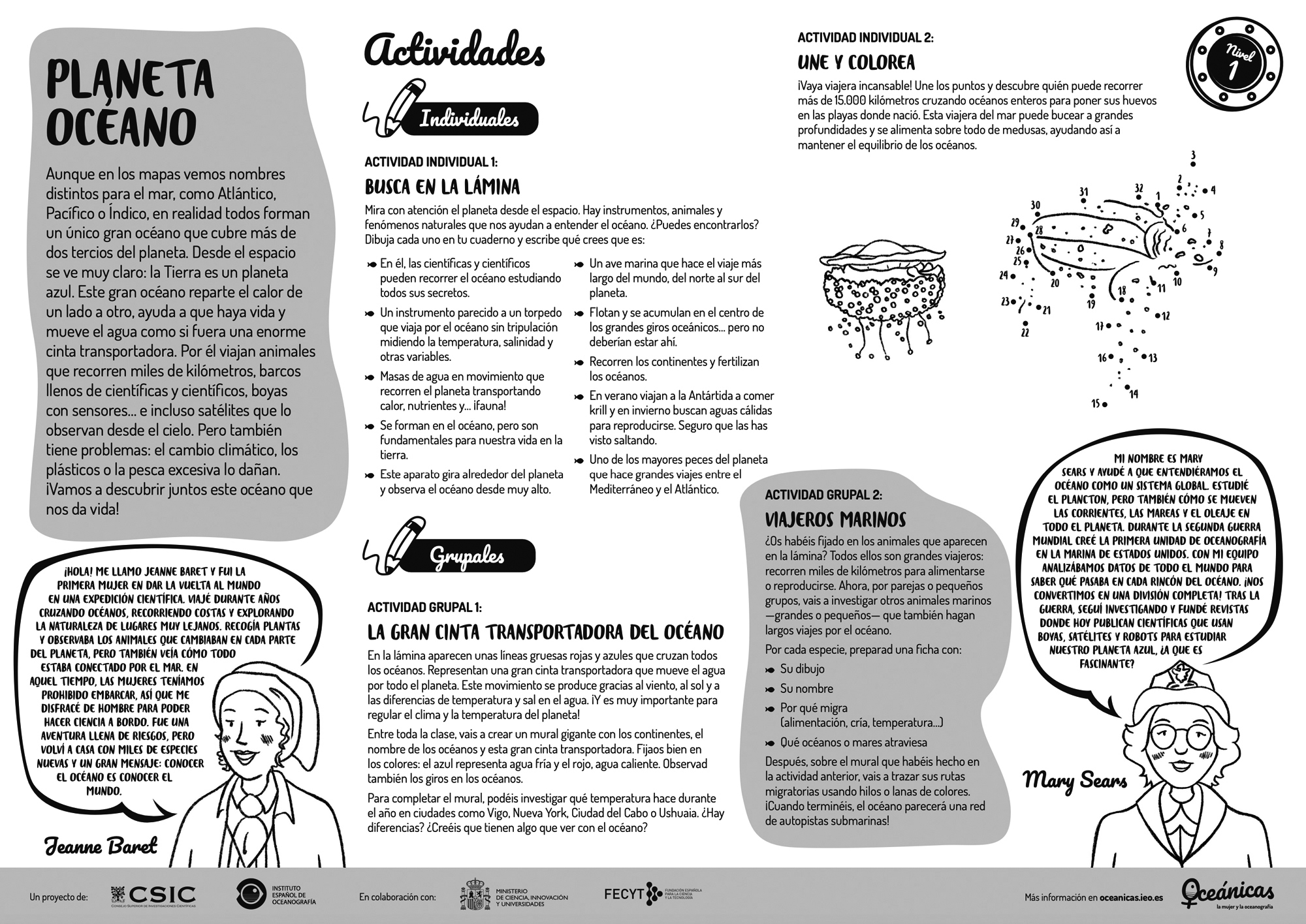 La col·lecció de fitxes didàctiques Oceánicas: pioneres de l’oceanografia convida a descobrir l’oceà des de la perspectiva de la ciència i la igualtat. A través de 7 il·lustracions molt detallades, activitats i biografies de dones pioneres en oceanografia, l’alumnat es converteix en explorador i exploradora de l’oceà: investiga els seus misteris, comprèn la seva biodiversitat i reflexiona sobre els reptes que afronta el nostre planeta blau.