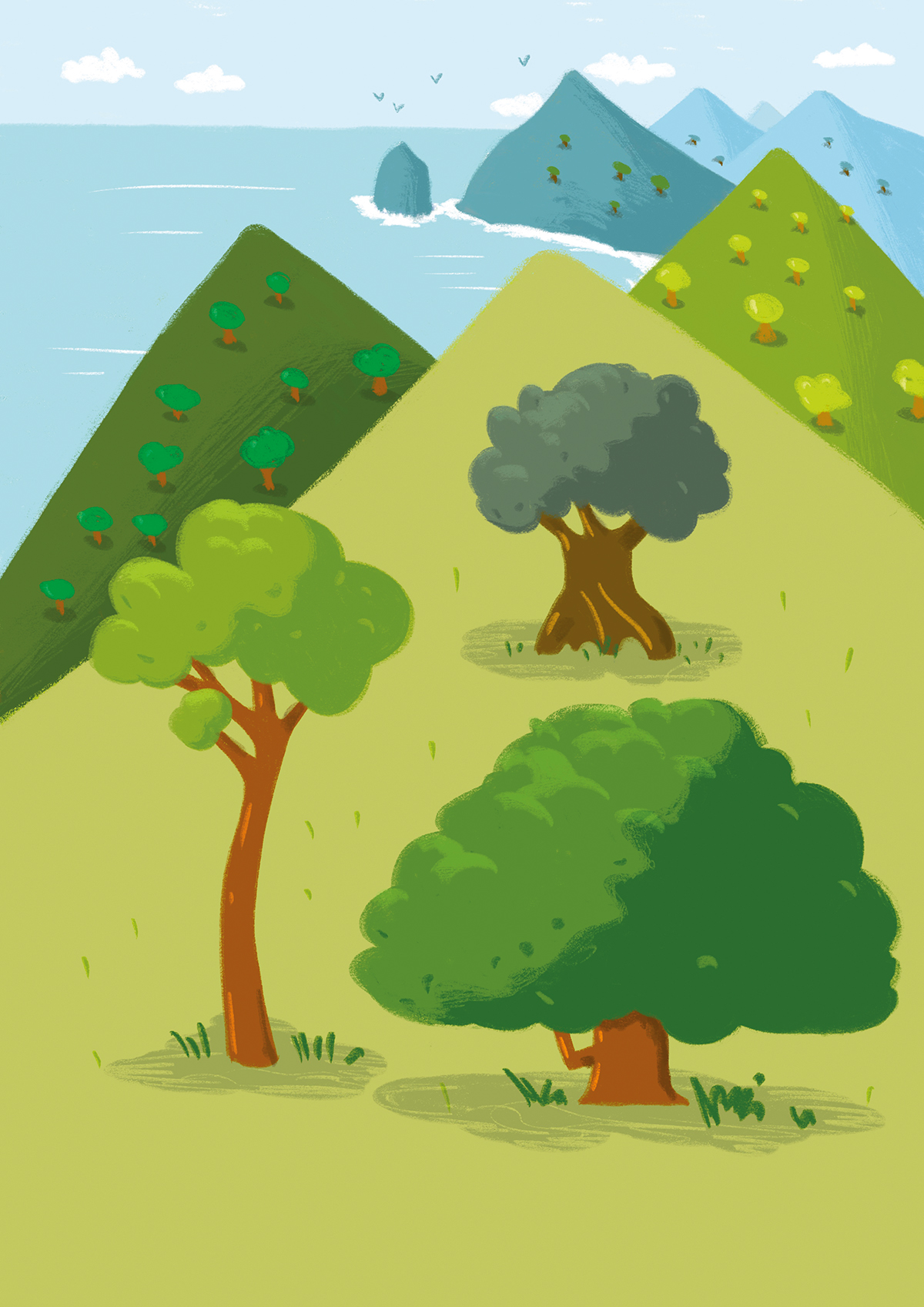 S’ha desenvolupat íntegrament en digital, a partir d’esbossos manuals realitzats en Procreate, combinant traços simples i colors vius en cada il·lustració, des de “La Colcada” fins als elements més emblemàtics de l’illa. El tractament gràfic s’adapta al públic infantil més petit, amb formes senzilles i una paleta harmoniosa que reforça el missatge d’acollida.